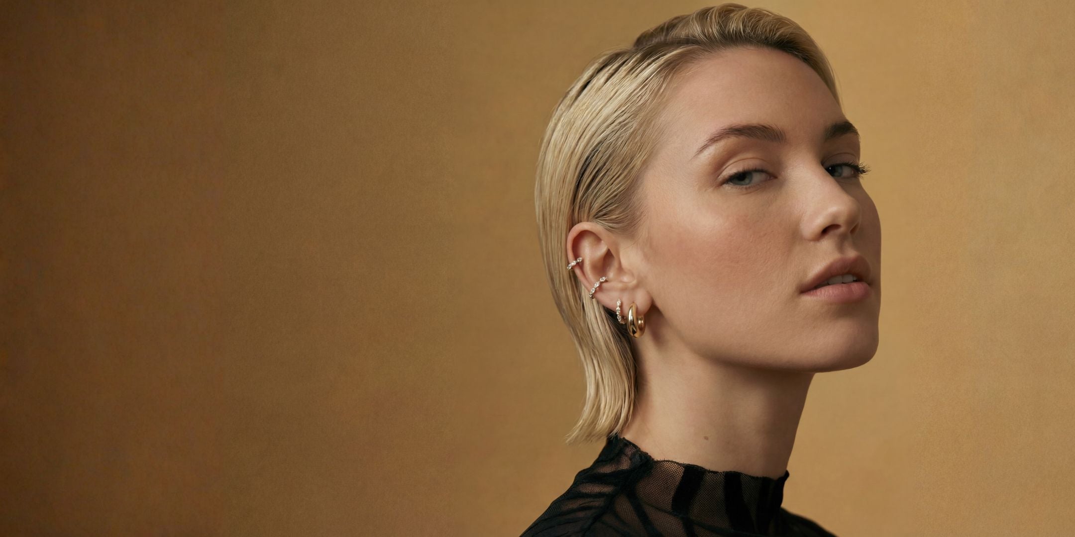 Des lignes fines et précises. Des bijoux pensés pour l’oreille, pour accompagner le corps sans s’imposer.